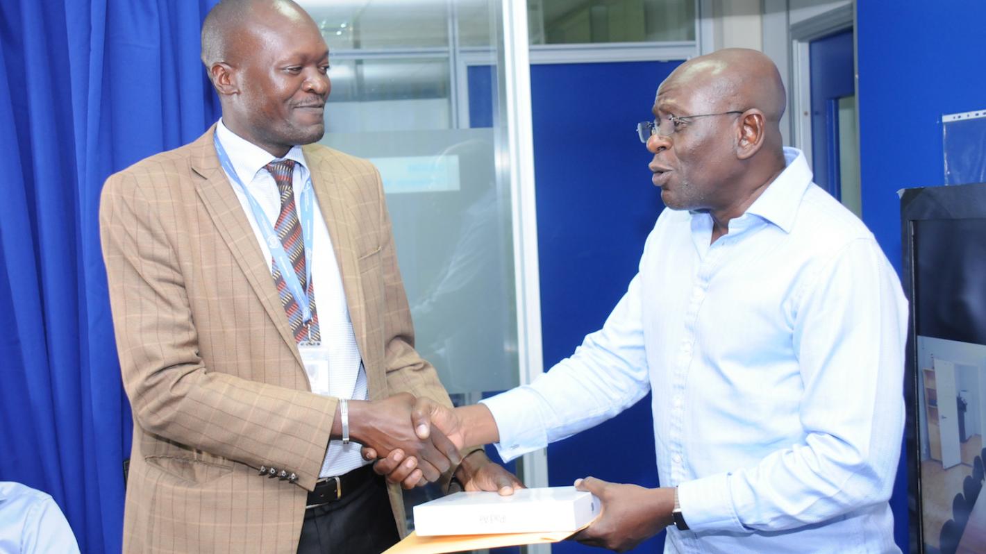 UNSOS Director Mr. Amadu Kamara, announced the winning entry at a staff meeting, at the United Nations Office at Nairobi on Thursday 17 December 2015.