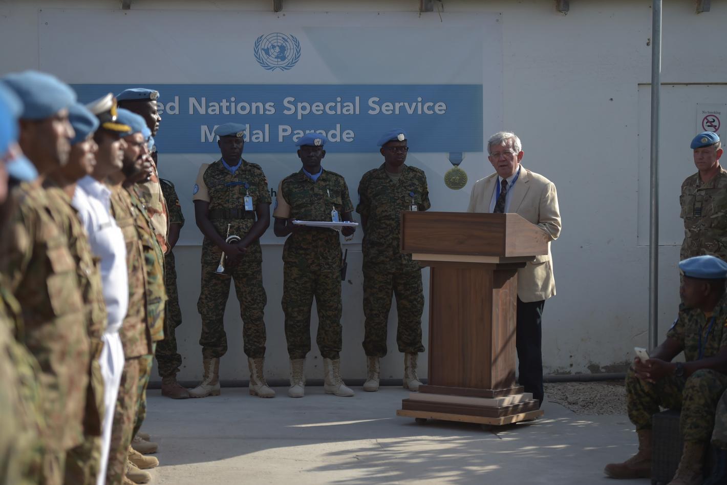 Mogadishu – A group of 31 British soldiers who are concluding their tour of duty with the United Nations Support Office in Somalia (UNSOS) were today awarded medals for their distinguished service in Mogadishu. The Special…