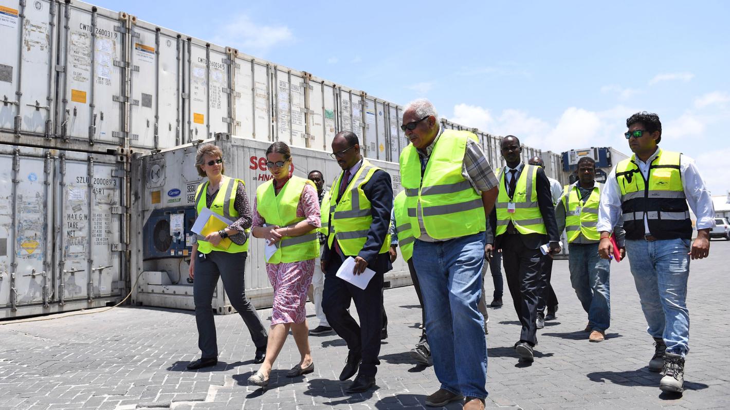On 28 August, the Somali Federal Minister of Defence, Hon. Hassan Ali Mohamed, visited the UNSOS camp in Mogadishu and was taken for a tour of UNSOS facilities by Ms. Lisa Filipetto, Head of UNSOS. The Minister visited the UNSOS aeromedical transit centre which facilitates medical and casualty evacuations for AMISOM and SNA personnel; the Agility warehouse where rations for AMISOM and SNA are stored for onward distribution; the solid waste and waste water treatment plants; and the AMISOM Level II hospital which also provides treatment to SNA soldiers.