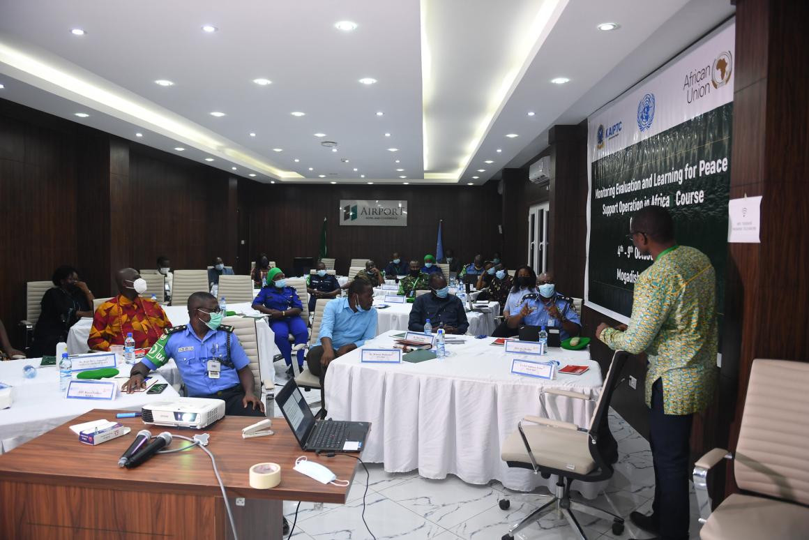 The Monitoring, Evaluation and Learning for Peace Support Operations in Africa Course (MELPAC) for AMISOM, facilitated by the Kofi Annan International Peacekeeping Training Centre (KAIPTC), was held in Mogadishu, Somalia, from 3-8 October 2021.
