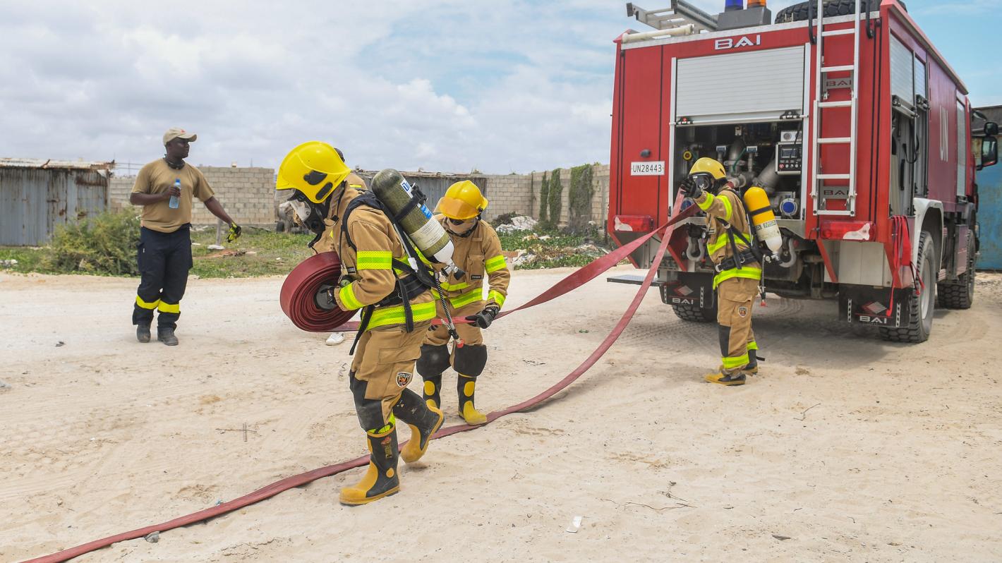 The training is taking place at the UNSOS Fire Training Facility located within the Aden Abdulle International Airport in Mogadishu and is being facilitated by Somali Aviation College and the African Union Mission in Somalia (AMISOM) instructors.