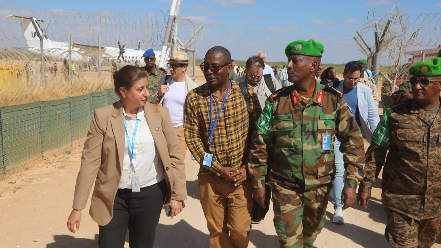 Upon arrival in Beletweyne, the capital of Hiiran region, Ms. Sadozai was received by ATMIS Sector Four Commander Col. Said Waberi Harour, his Deputy Col. Shumet Telelew and senior UN officials.
