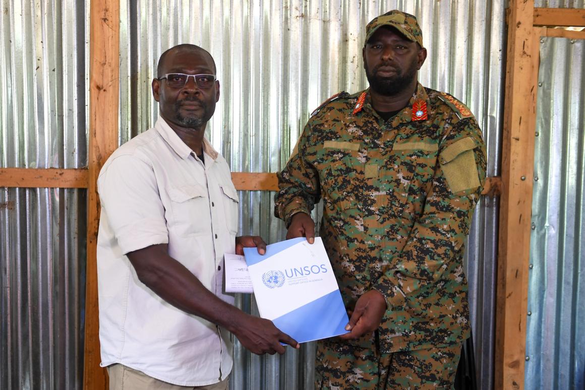 Waxaa intaas dheer in UNSOS ay qaadday qalab QM lahayd oo aan la hagaajin karin, halka ay agab shaqeynaya ku wareejisay Ciidanka Qaranka Soomaaliyeed, sida nidaamyada lagu sifeeyo biyaha, qalabka tamarta ka dhaliya qorraxda, konteenarro, taangiyo biyaha lagu kaydiyo iyo agab kale oo lagu xoojinayo ammaanka sida taawarrada isgaarsiinta iyo tiirarka laga waardiyeeyo baraha kantaroollada.