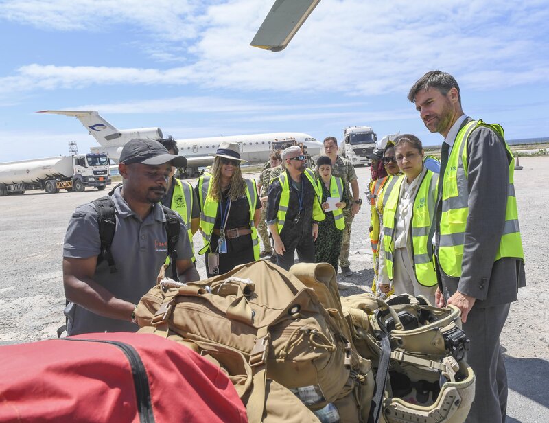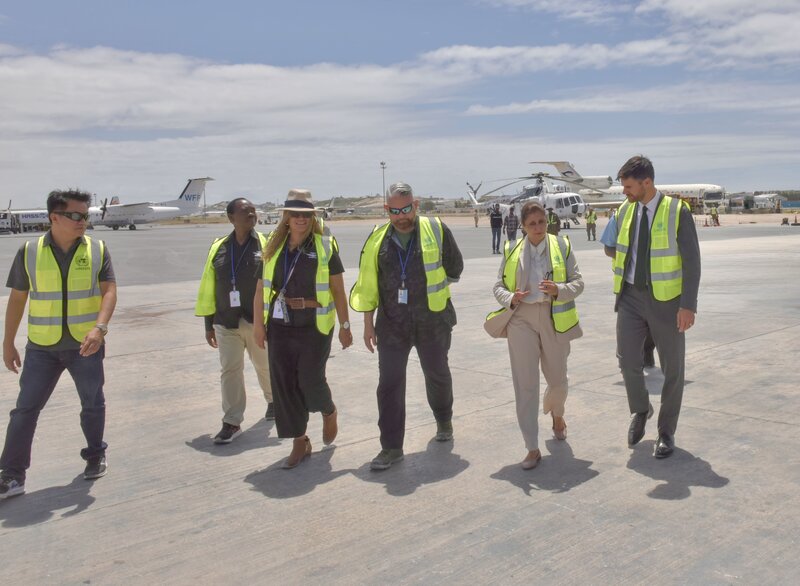 HE Ambassador King, had a first-hand experience of UNSOS’ aviation operations, including the triage area, and medevac helicopters - where he witnessed the use of life-saving equipment- and engaged with Somali Aviation students about the impact of the UNSOS aviation mentorship program.